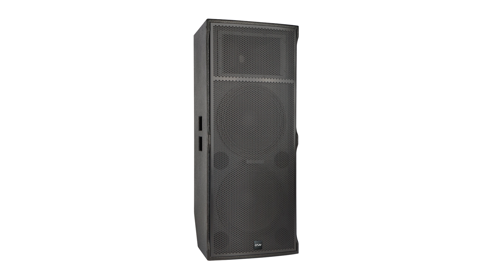 三分频三驱模式设计, 大号角远距离扩声,有效扩展了中频的工作带宽,优化了相位响应及瞬态特性。结合材料传输特性、频率交叠特性以及分频滤波等多种特性优化匹配,实现了与低频单元的完美结合,使整个扬声器系统的频响特性和相位响应大幅提升;内置高音托板从而保护号角与高音头远距离运输的安全性。在主观听感上,使系统的解析度和声像定位均取得上佳表现,是户外中小型流动性演出上佳选择。