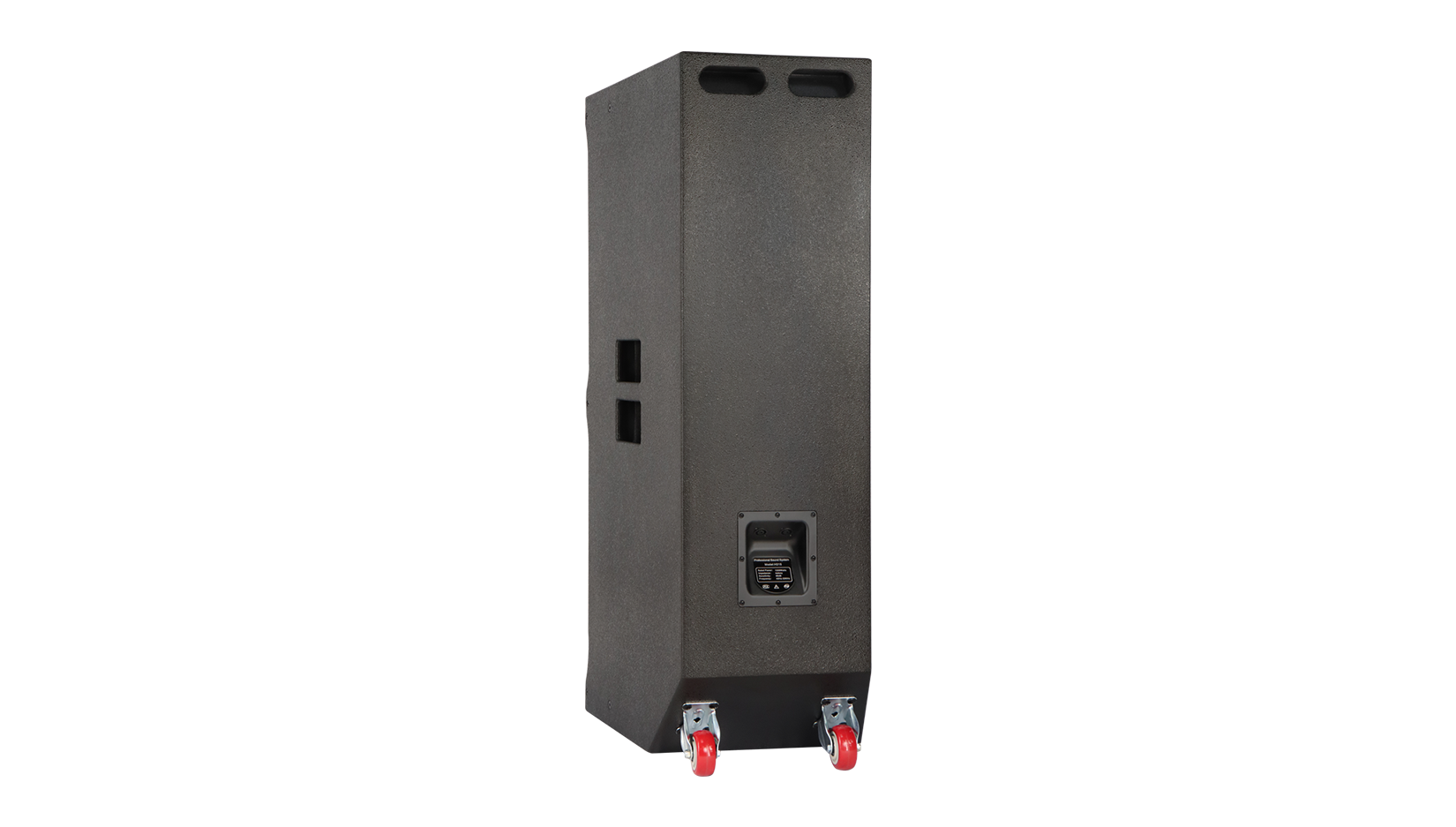 7、音箱底部加上推动轮子,且音箱顶部和两侧都有提手方便一个人在户外轻松进行移动。